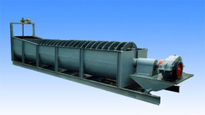 | 螺旋分級(jí)機(jī) | 螺旋分級(jí)機(jī) 主要有高堰式單螺旋和雙螺旋、沉沒式單螺旋和雙螺旋四種分級(jí)機(jī)。該機(jī)廣泛適用于選礦廠中與球磨機(jī)配成閉路循環(huán)程分程分流礦沙,或用在重力選礦廠中來分級(jí)礦砂和細(xì)泥,及 金屬選礦流程中對(duì)礦漿進(jìn)行粒度分級(jí),及洗礦作業(yè)中的脫泥、脫水等作業(yè)。該機(jī)具有結(jié)構(gòu)簡(jiǎn)單、工作可靠、操作方便等特點(diǎn)。分級(jí)機(jī)是是借助于固體粒大小不同,比重不同,因而在液體中的沉降速度不同的原理,細(xì)礦粒浮游在水中成溢流出,粗礦粒沉于槽底。由螺旋推向上部排出,來進(jìn)行機(jī)械分級(jí)的一種分級(jí)設(shè)備,能把磨機(jī)內(nèi)磨出的料粉級(jí)于過濾,然后把粗料利用螺旋片旋片旋入磨機(jī)進(jìn)料口,把過濾出的細(xì)料從溢流管子排出。該機(jī)底座采用槽鋼,機(jī)體采用鋼板焊接而成。螺旋軸的入水頭、軸頭、采用生鐵套,耐磨耐用,提升裝置分電動(dòng)和手動(dòng)兩種。