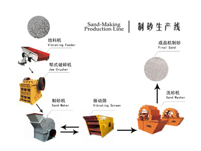 石料由振動(dòng)給料機(jī)均勻地送到鄂式破碎機(jī)進(jìn)行粗破,粗破后的物料由膠帶輸送機(jī)送入到制砂機(jī)進(jìn)行進(jìn)一步破碎,細(xì)碎后的物料被輸送到振動(dòng)篩進(jìn)行篩分,達(dá)到成品粒度要求的物料被送入洗砂機(jī)清洗,清洗后由成品輸送帶輸出即為成品;未達(dá)到成品粒度要求的物料從振動(dòng)篩返回制砂機(jī)重新加工,形成閉路多次循環(huán)。成品粒度可按用戶(hù)的需求進(jìn)行組合和分級(jí)。如果選用干法生產(chǎn)工藝,可配備粗細(xì)粉分離機(jī)和除塵設(shè)備。