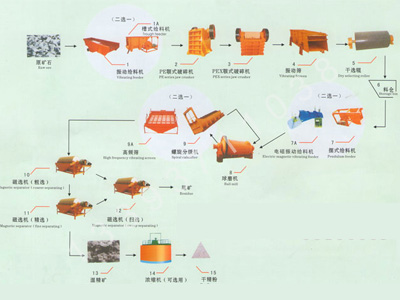 鉛鋅礦,銅礦,鐵礦選礦生產(chǎn)線生產(chǎn)流程如下:開采的礦石先由顎式碎石機(jī)進(jìn)行初步破碎,在破碎至合理細(xì)度后經(jīng)由提升機(jī)、給礦機(jī)均勻送入球磨機(jī),金屬選礦生產(chǎn)線粉磨流程由球磨機(jī)對(duì)礦石進(jìn)行粉碎、研磨。經(jīng)過球磨機(jī)研磨的礦石細(xì)料進(jìn)入下一道工序:分級(jí)。螺旋分級(jí)機(jī)借助固體顆粒的比重不同而在液體中沉淀的速度不同的原理,對(duì)礦石混合物進(jìn)行洗凈、分級(jí)。經(jīng)過洗凈和分級(jí)的礦物混合料在經(jīng)過磁選機(jī)時(shí),由于各種礦物的比磁化系數(shù)不同,經(jīng)由磁力和機(jī)械力將混合料中的磁性物質(zhì)分離開來。經(jīng)過磁選機(jī)初步分離后的礦物顆粒在被送入浮選機(jī),根據(jù)不同的礦物特性加入不同的藥物,使得所要的礦物質(zhì)與其他物質(zhì)分離開。在所要的礦物質(zhì)被分離出來后,因其含有大量水分,須經(jīng)濃縮機(jī)的初步濃縮,再經(jīng)烘干機(jī)烘干,即可得到干燥的礦物質(zhì)。
